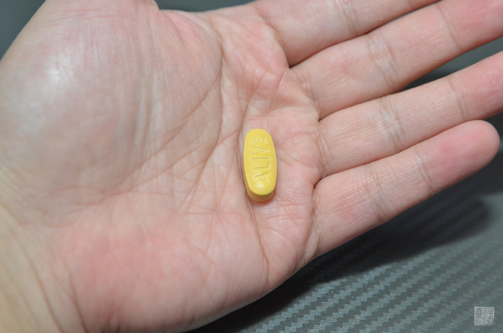 이래저래 후기를 살펴보더라도 호평이 대부분인 얼라이브 제품이지만, 사람들이 말하는 유일한 단점 중 하나는 얼라이브의 제품들은 하나 같이 알맹이가 크다는 점이다. 위 사진을 본다면 얼라이브의 알약은 손이 작지 않은 남자의 손을 기준으로 했을 때도 새끼손가락 한 마디에 이를 정도의 크기를 지니고 있어 살짝 삼키는 게 두려울 정도다.
