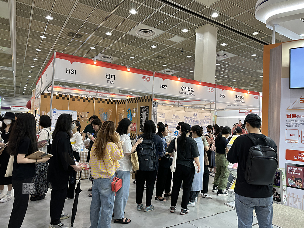 나는 2023 서울국제도서전을 네이버를 통해 사전 예약을 했었기 때문에 곧바로 창구에서 예약 번호로 입장 팔찌를 받은 이후 전시홀로 발을 옮겼다. 티켓 창구에서 들어갈 수 있는 입구를 통해 전시홀로 들어간다면 곧바로 위 사진에서 볼 수 있는 두 출판사의 모습을 볼 수 있다. 오른쪽은 다국적 부스가 있었는데… 거기는 굳이 가지 않았다.
