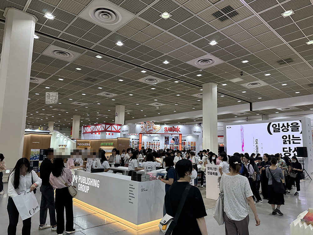 다른 출판사 부스도 나름 사람들로 북적거리고 있었지만, 대원씨아이가 운영하는 슬램덩크 단독관은 '북적거리다'가 아니라 '인산인해를 이루었다'라고 말하는 게 옳은 표현이라고 생각한다. 내가 방문한 시간이 이른 시간이었음에도 불구하고, 정말 많은 사람이 <슬램덩크> 만화책과 관련 도서를 구매고자 줄이 한 바퀴를 돌고 있었다.