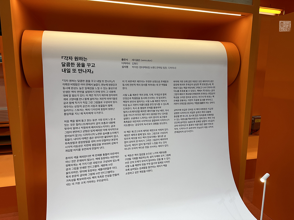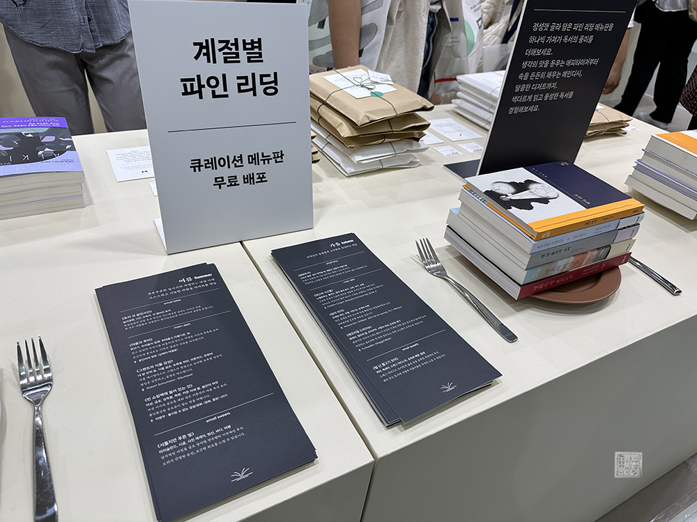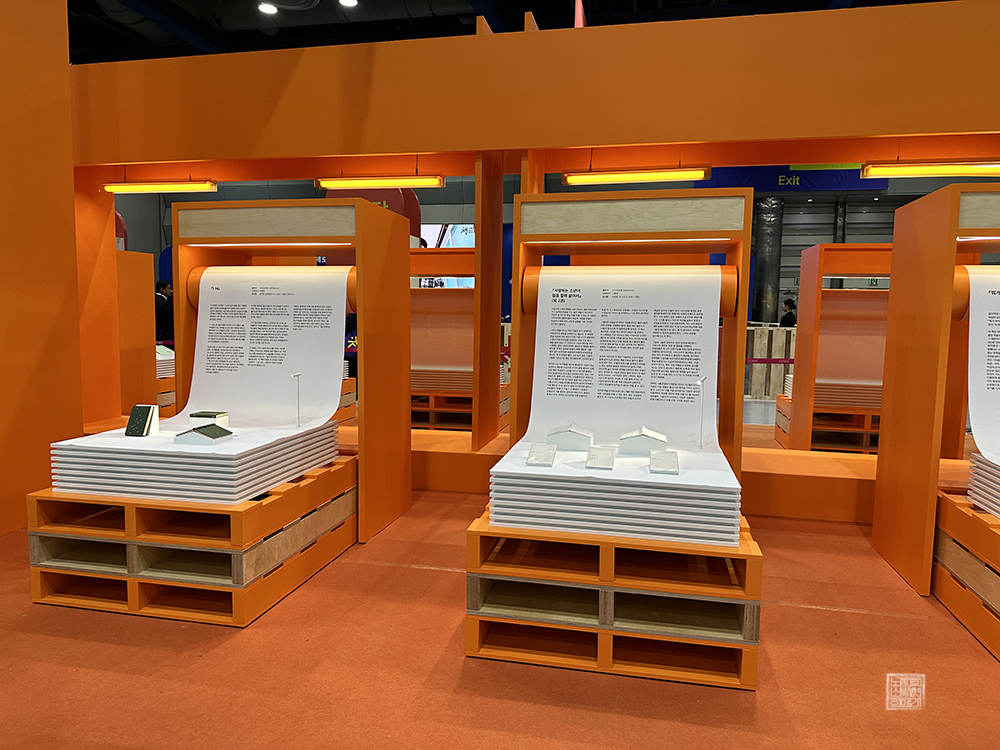 2023 서울국제도서전 전시홀의 오른쪽 벽면 부분을 본다면 '한국에서 가장 아름다운 책'이라고 해서 '한국에서 가장 아름다운 책' 공모에서 선정된 책들을 만나볼 수 있다. 그냥 단순하게 본 책의 표지와 구성을 이렇게 깊이 해석해서 책에 대한 평가를 해놓은 것이 신기했고, 평소 책을 읽으면서 생각하지 못했던 부분이라 꽤 흥미롭기도 했다.
