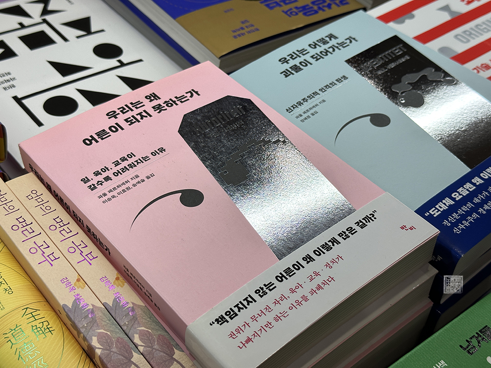 그리고 바로 근처에 있는 민음사 부스에서는 #내일을위한질문 #21세기교양 두 가지 주제로 정리된 여러 책을 볼 수 있었는데, 책들의 제목이 하나 같이 모두 '와, 이건 진짜 시간을 내서 읽어보고 싶다'라며 호기심을 자극했다. 특히, 위 사진에서 볼 수 있는 <우리는 왜 어른이 되지 못하는가>, <우리는 어떻게 괴물이 되어가는가> 두 책이 그랬다.